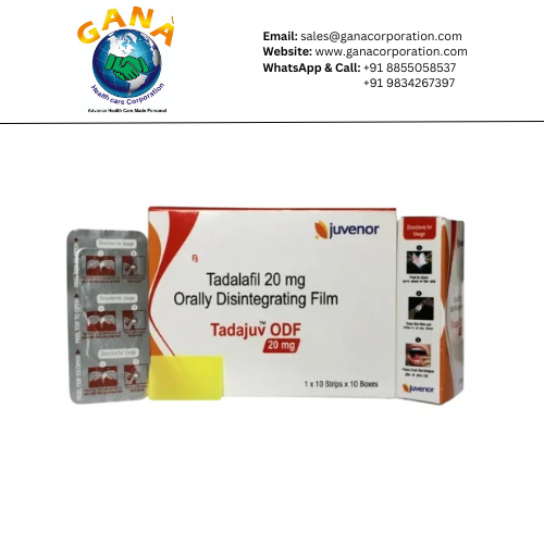 Tadajuv Tadalafil 20 mg ODF Strip is used to treat erectile dysfunction (ED) in men and pulmonary arterial hypertension (PAH). It increases blood flow to the penis to help men get an erection. In PAH, it relaxes or widens the blood vessels inside the lungs, which reduces blood pressure in the lungs.